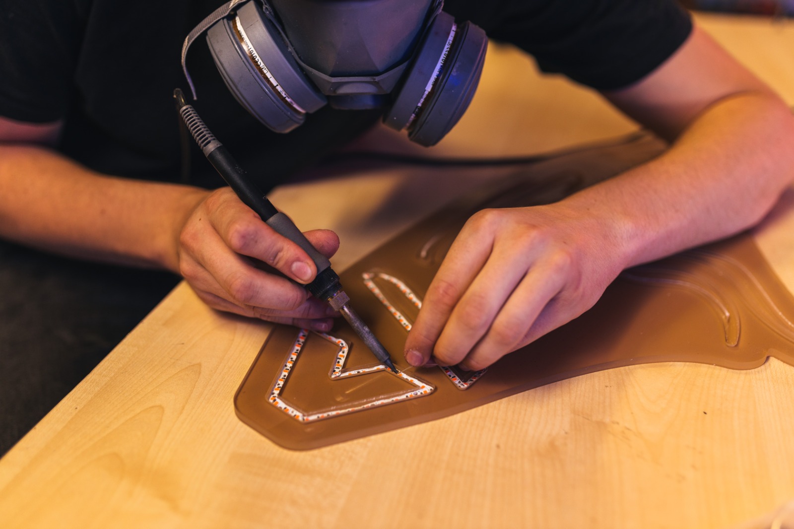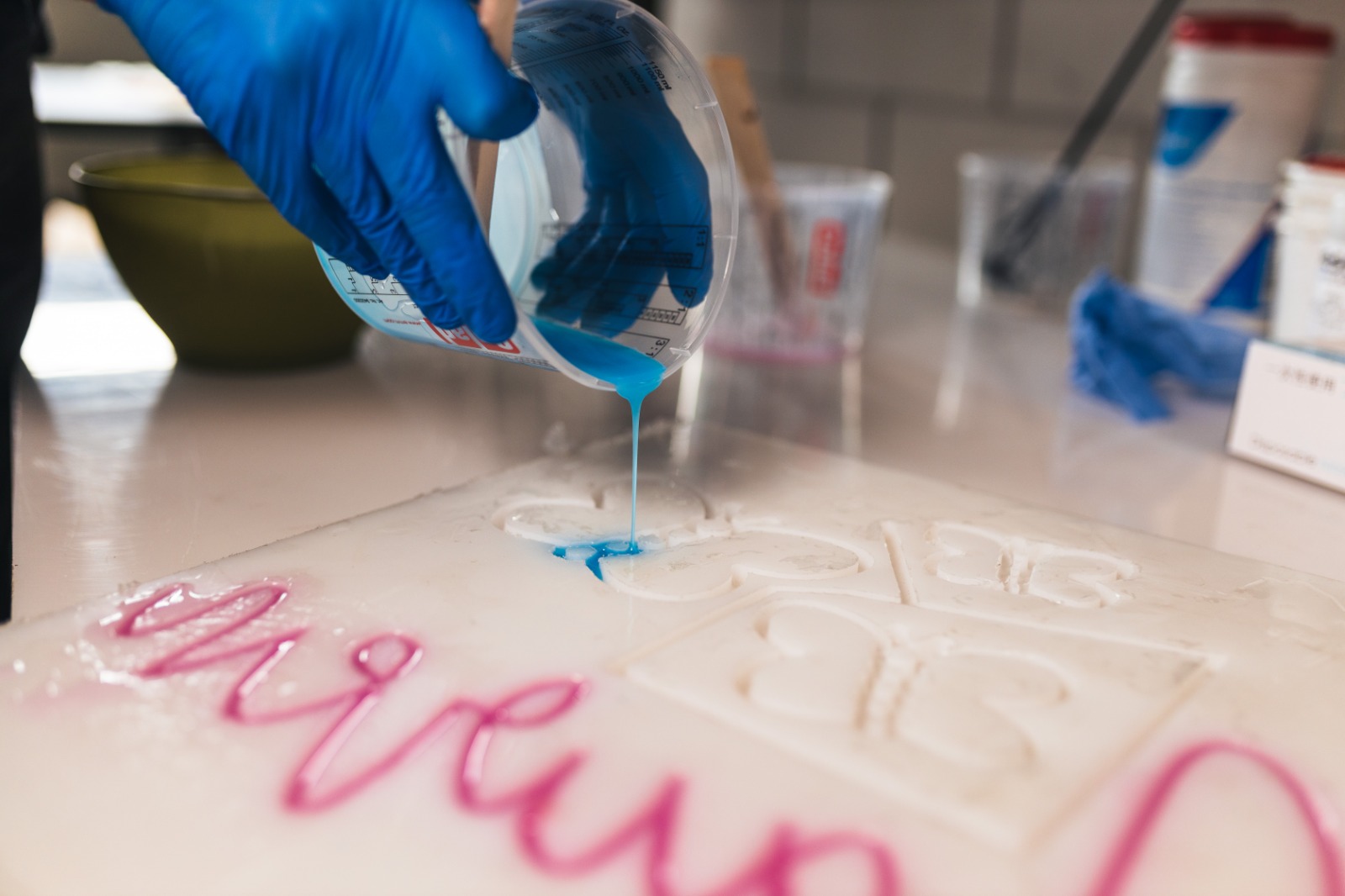 We gieten het LED’s Go Neon epoxy mengsel in de mal.